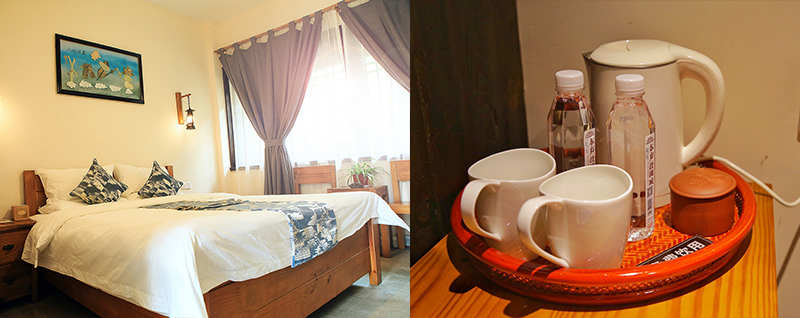 石供雅园客房设备以石头制品为主,墙角放置着小型的石臼和挂在墙上的壁画给整个空间增加了无限的复古之风,似乎可以回到那个特殊的石器年代。 石于山中见风骨,水滴石穿诉柔情,石供的雅致大多与水有着莫大的关联。 夜宿于此,聆听雨水滴落石供上的细语,似乎更能体会英雄美人的爱恨纠葛,思索自然道法的相生相克。